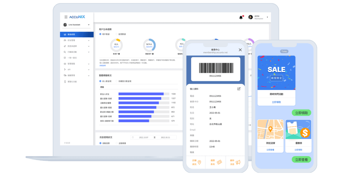 協助品牌建立包含尊榮、回饋、流暢三大核心的會員忠誠計畫 。透過 LINE 註冊起程、多元集點方式與自動化全渠道溝通,品牌能彈性設定會籍等級,實現精準分眾行銷與高效回購 。